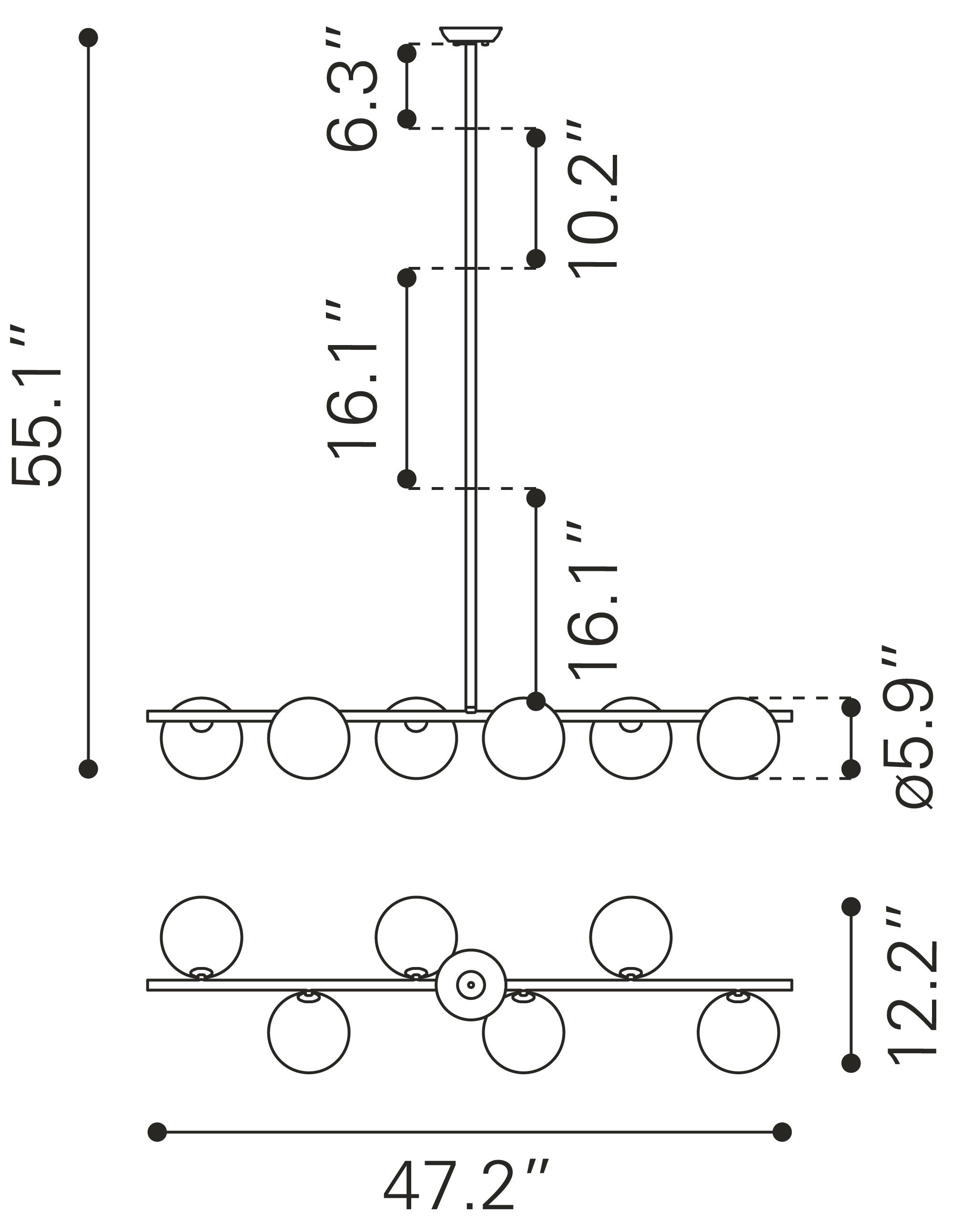 Modern meets deco in the Keyoz Ceiling lamp, has a matte black steel body with clear glass shades. This lamp will elevate any space, living area, hotel lobby, or modern maximalist kitchen.