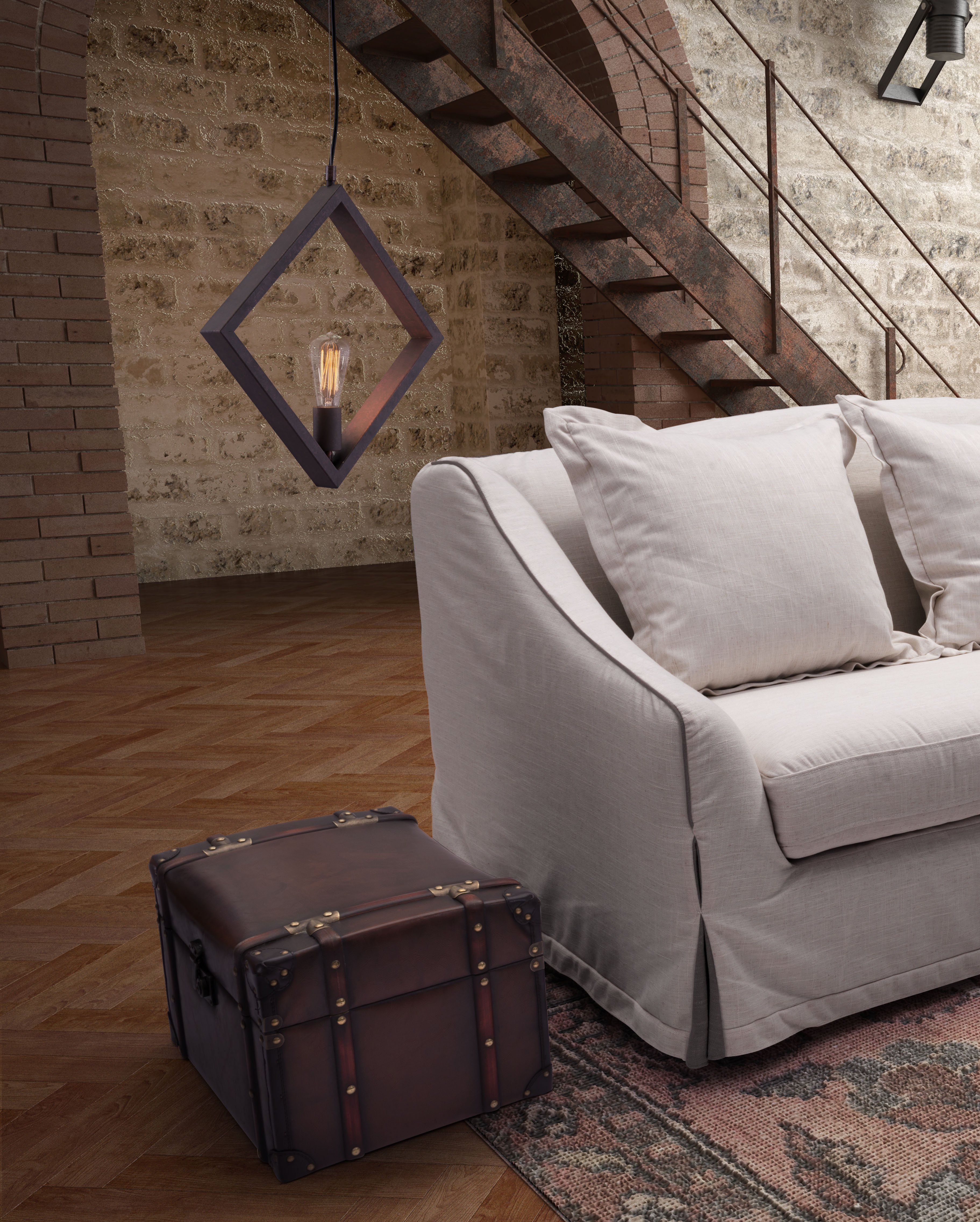 Rotorura Ceiling lamp creates an eye-catching elegant silhouette, surrounding a filament-style bulb the diamond-shaped frame is finished in distressed black. Max Watt 40 W, Size E26, Type ST64. UL approved and listed.