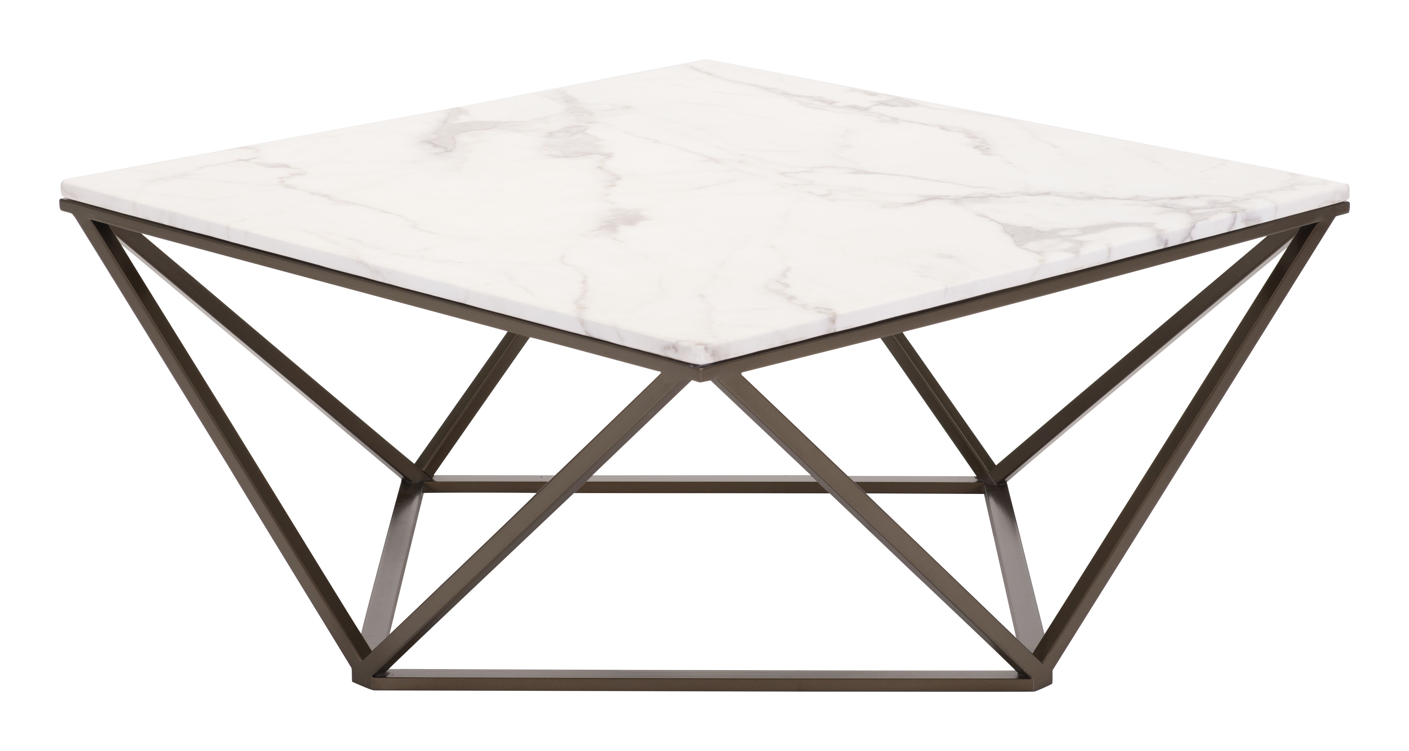 Perfect Geometry. This gorgeous coffee table with its square marble-like top that rests on an architecturally inspired base is a beautiful addition to any living space. Its modern open-air design is perfect for small spaces and its large surface is functional, keeping everything you need close at hand.