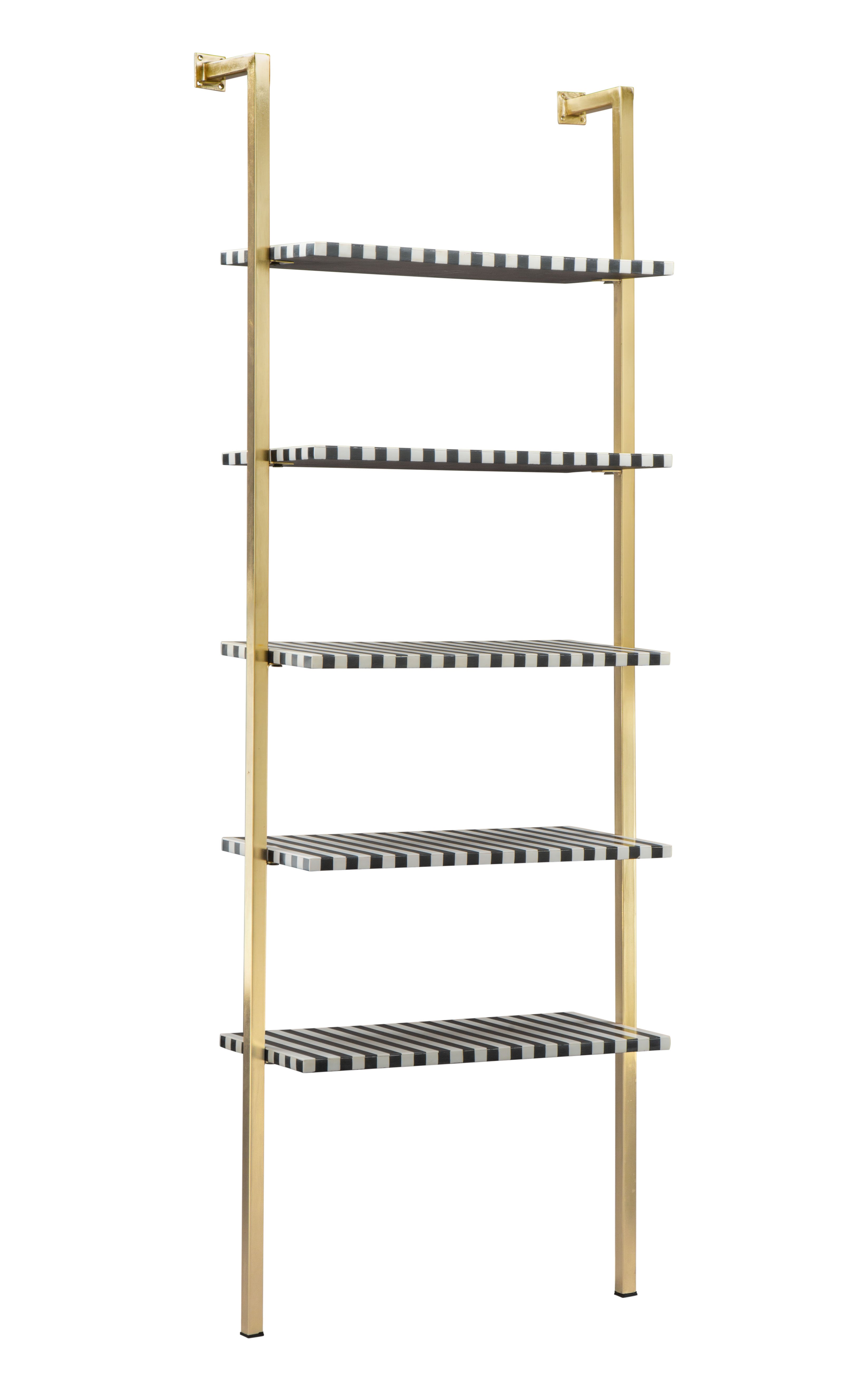 The Zebra Shelf has resin and MDF shelves with steel frames. It is a modern glam piece for any space, residential or hospitality.