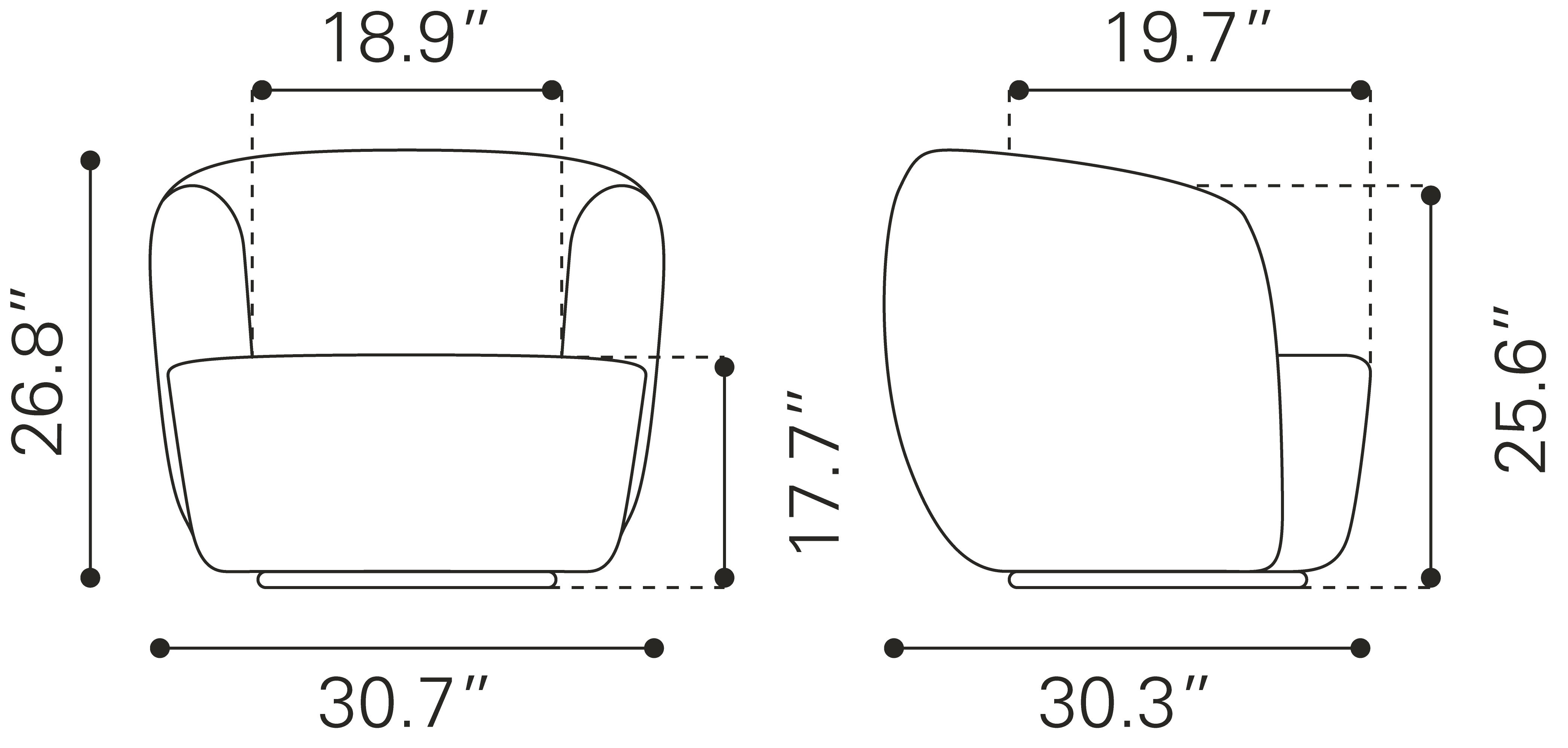 This chair is wrapped in a shearling-style polyester and a swivel base. This chair has a soft modern look with plush deco and boho lines. It looks great in any space, hotel lobby, spacious loft, or glam bedroom.