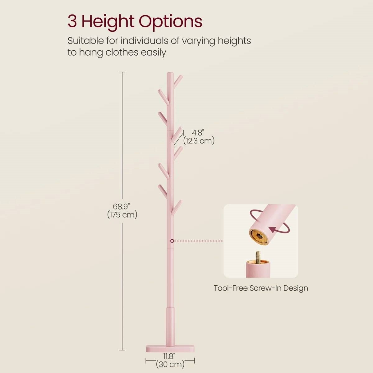 • Modern Solid Wood Coat Rack Entryway Hall Tree Hat Stand in Pink