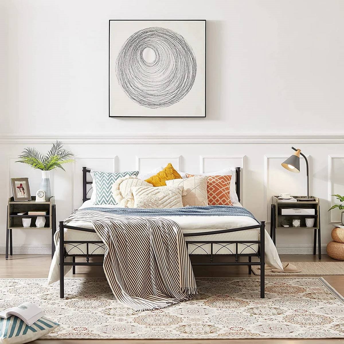 This Set of 2 Modern Industrial Grey Wood Black Metal Side Table Nightstand End Table crafted with a vintage wooden board and black metal pipe frame perfectly next to your sofa or functions as a pair of nightstands. The side table set of 2 with 2 large capacity storage compartments offers extra storage. It's the perfect choice for your books, magazines, chargers, and other bedside stuff. Unique stacking design. You can display one or stack it on top of the other to increase more storage space for your living room, Besides, with adjustable feet for easy leveling on uneven floors and to protect floors from scratches. It can be placed in the living room, bedroom, reception room, or in an entryway; especially in small places. Also can be used as a bedside table, telephone table, filing cabinet, sofa side table. More features are waiting for you to explore. Detailed instructions and all parts and screws, and assembly tools are included. You don't need to have an engineering degree to assemble this end table.
