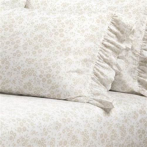 Peacefully drift off to sleep night after night with this serene bedding sheet set. The soft fabric and peaceful print featured on this Garden Of Flowers Ruffle Sheet Set romanticize your bedroom with floral designs and textured ruffles. This sheet set includes a flat sheet, fitted sheet and matching pillowcases. Your bedroom should reflect your character and create a placid environment for soothing rest. This coquette styled Garden Of Flowers Ruffle Sheet Set captures a traditional look with soft colors and textured ruffles. Though this is a printed sheet set, the very light brush of pattern lets you coordinate with any bedding of your choice. A farmhouse or cottagecore home is not complete without floral prints, and this Garden Of Flowers Ruffle Sheet Set will fit right into your cozy home. The flat sheet is edged on one side with a 4-inch ruffle detail, as are the openings to each pillowcase. Each pillowcase opens on the ruffled side to easily slip your pillows inside. This feminine frilly Garden Of Flowers Ruffle Sheet Set set will help complete the look of your bed for a designer styled look. Pair it with your favorite quilt, comforter or bedspread set. The simple yet classic style is ideal for many decorating themes, including traditional, shabby chic, vintage, cottagecore, farmhouse and more. This Garden Of Flowers Ruffle Sheet Set comes complete with the flat sheet, a fitted sheet, and 4 pillowcases. The flat sheet and the pillowcases each have one edge of ruffles for a beautiful look and added texture. Conveniently, this Garden Of Flowers Ruffle Sheet Set is safe to machine wash and tumble dry. Follow all care instructions on the label to maintain the integrity of the ruffles and for long lasting use.