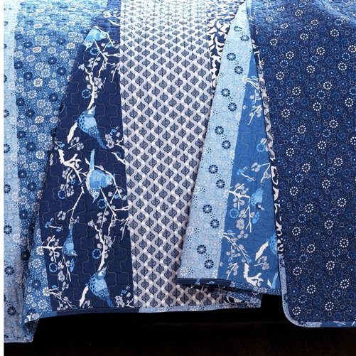 This King Size Blues Boho Reversible Lightweight Quilt Set includes a soft cotton quilt and 2 matching pillow shams which complete the look. This item is OEKO-TEX Standard 100 certified.