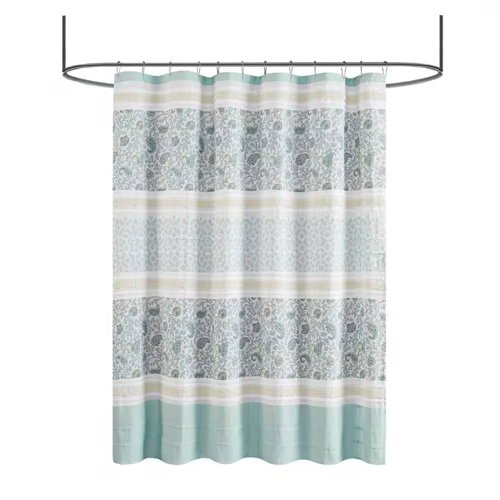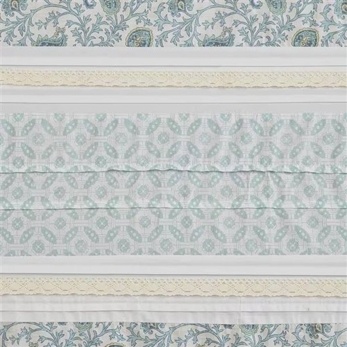 For a charming and stylish touch to your bathroom, this 72 x 72-in Cotton Shower Curtain with Teal Blue Grey Cream White Paisley Pattern holds all of the perfect elements to do shabby chic the right way. A mixture of coral, orange, and hints of green are printed in a paisley design alongside pin tucked white fabric that is separated by beautiful lace taping. Finished with 12 button holes at the top makes this shower curtain easy to assemble hooks and simply hang on any standard rod (hooks and rod not included). This shower curtain is also OEKO-TEX certified, meaning it does not contain any harmful substances or chemicals, ensuring quality comfort and wellness. Each shower curtain measures 72x72" and is machine washable for easy care; to keep this shower curtain in the best condition a water repellant liner is highly recommended (liner not included and should be purchase separately).