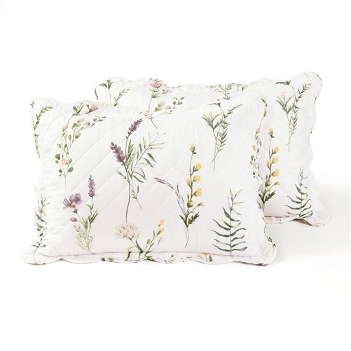Brighten your bedroom with the relaxing floral pattern of this Full/Queen Scallop Edge Floral Lightweight 3 Piece Quilt Set. The welcoming print of this quilt set evokes the joyous, free-spirit feeling of relaxing on a bed of colorful wild flowers. The soft floral pattern of this pretty and nostalgic Wildflower Scallop Edge Floral 3 Piece Quilt Set is sure to make your bedroom feel extra homey. The back of this bedding set features a solid neutral color. The scalloped edge detail adds even more charm to your space. This microfiber bedding set offers softness and breathability. The polyfill is perfect for hot sleepers and great as an extra layer for those cold sleepers who layer-up to keep warm. Add this set to your cottage or farmhouse home decor. This item is OEKO-TEX® Standard 100 certified.