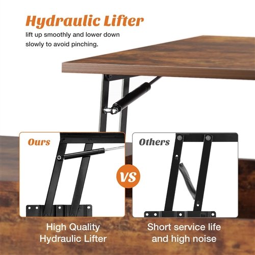 • With this smart and convenient lift-top design, this coffee table keeps your daily items at hand by hiding them under the top, while giving you a neat tabletop as well