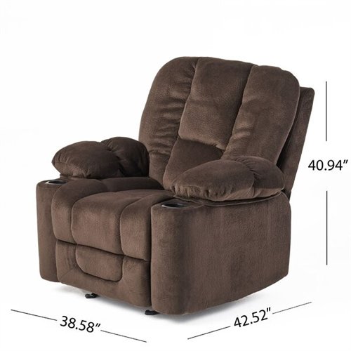 Relaxation is within reach with this Traditional Upholstered Manual Reclining Sofa Chair w/ 2 Cup Holders and Footrest Brown. Update your living room, den, or theatre room with this plush manual glider recliner. It features two cup holders and a two-position reclining type.