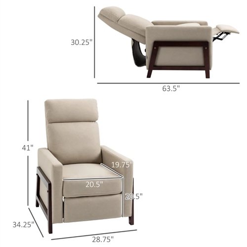 Sit back and relax in this Modern Upholstered Manual Reclining Sofa Chair w/ Armrest and Footrest Grey. The back goes to 145° by manual push back as the footrest lifts. You can sit up straight or with your legs up or lie flat for the ultimate lounging experience. The classic and simple look blends well in various stylish home setups. The square arms and a straight back add a traditional look to our recliners. Upholstered in the soft leather-like microfiber cloth and foam padding with a pocket spring system, these recliner chairs for adults provide extraordinary comfort and bounce to lay back and relax in. The microfiber cloth ensures breathability and low maintenance, while the steel frame and solid rubber wood legs offer a solid foundation.