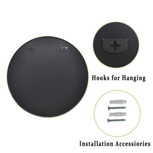 This 36 Inch Round Bathroom Vanity Wall Mirror Frame Matte Gold is carefully crafted with high-clarity reflection and a lightweight metal frame with a matte finish, so style and quality can fuse to make it a mainstay in your home. Make any room in your living space appears larger and more stylish by adding this extra-large mirror to the wall. In the case of this mirror shattering, safety is made a priority with an anti-blast film that sticks to the glass so broken pieces remain in place. Putting your mirror up is made simple, as just one person can hang it by 4 built-in brackets in as little as 15 minutes!