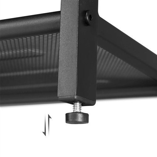 This Modern Industrial Style 5-Tier Black Metal Shoe Rack with Brown Wood Top would be a great addition to your home. Triple-bonus: you will receive a shelf with a beautifully finished engineered wood surface, a shoe rack with 4 black mesh shelves, and a decorative piece for your entrance area that is characterized by the trendy industrial style. Are all of the family's shoes piling up in the hallway? Instead of tucking them haphazardly in the corner, you can at least accommodate them in this smart 5-tier shoe rack. 4 Open shelves with dense steel mesh offer plenty of space for your shoes; the eye-catching greige surface welcomes bags, keys, picture frames, or a pretty bouquet of roses. Product description Specifications: - Color: Rustic Brown - Material: Particleboard, Steel - Product Size: 39.4"L x 11.8"W x 36.4"H (100 x 30 x 92.5 cm) - Product Weight: 23.4 lb (10.6 kg) - Max. Static Load Capacity of Top Shelf: 22 lb (10 kg) - Max. Static Load Capacity of Each Mesh Shelf: 11 lb (5 kg) Package Contents: - 1 x Shoe Bench - 1 x Accessory Kit - 1 x Instructions Notes: - Do not expose the product to heat, direct sunlight, or damp environments. - Children are not allowed to climb on the product. Consider a larger option if you're looking to store large shoes (Men's Size 13 or over). Check out the You Might Also Need section for an alternative.