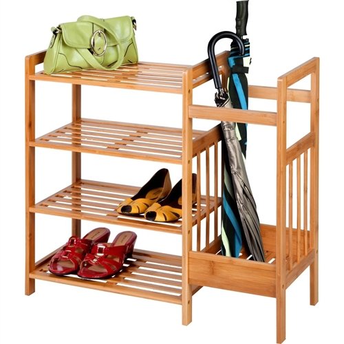 • 2-in-1 Entryway 4-Shelf Bamboo Shoe Rack and Umbrella Holder