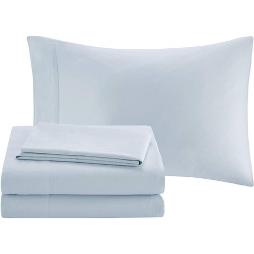 Give your mattress a magnificent makeover with this King 12 Piece Cotton Polyester Comforter Set Blue Paisley! Set includes 1 Comforter, 2 Decorative Pillows, 2 Euro Shams, 2 King Shams, 1 Bed skirt, 1 Flat Sheet, 1 Fitted Sheet, and 2 Pillowcases. Has a silky feel and is made from Polyester & Cotton. Set is in Eastern King (standard king) size and ships via FedEx Ground.