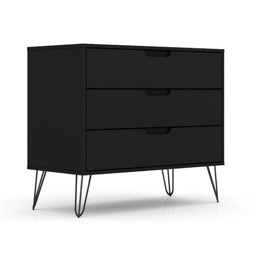 Modern Scandinavian Style Bedroom 3-Drawer Dresser in Black Wood Finish