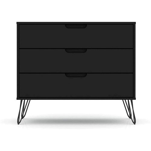 Bring some modern style to your home with this Mid-Century style dresser. This Modern Scandinavian Style Bedroom 3-Drawer Dresser in Black Wood Finish will fit into even the smallest of homes while still bringing sleek and practical style. With ample storage and minimalistic mid-century modern style, the Modern Scandinavian Style Bedroom 3-Drawer Dresser in Black Wood Finish is the perfect accompaniment to any bedroom space. Cutout handles keep the piece feeling fresh, and triple drawers offer plenty of space for clothing, personal items, and more. A display top provides space for showing off a decorative lamp or for sharing favorite framed family photos, travel trinkets, and perfume trays. Set this dresser under a mirror or painting to complete your space and create an instant bedroom focal point. It won't take up much room but will seriously deliver on quality and style. This piece is made of high-quality solid wood with metal accents to ensure durability and lasting beauty. Choose between cutout edge handles or a flush design to make this piece truly your own. Undeniable quality, a stunning look, and convenient storage come together to make this piece a must-have for any home or apartment.