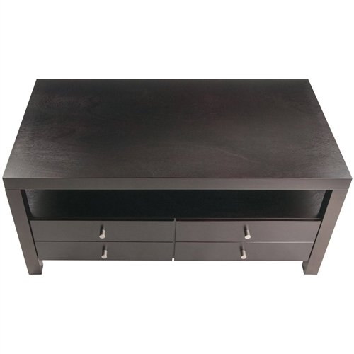 Bring the classic simplicity of Scandinavian design to your home or office with the Modern Espresso 2 Drawer Coffee Table. Eye-catching in the living room or family room, the expansive shelf and two large drawers provide plenty of storage for books, magazines, remote controls, and video games. The table is a handsome piece in an office reception area or waiting room for keeping magazines or other materials. Made of solid and composite wood in a smooth Espresso finish. Overall size is 40 in. W x 23 in. D x 18.25 in. H.