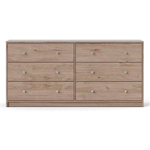 Organize your wardrobe with the Farmhouse Contemporary 6 Drawer Double Dresser in Oak. The simple, sophisticated design features six drawers with high sides, clean lines and a smooth finish. Equally suited for the kid's room or master bedroom, the double dresser is a versatile piece of furniture, offering ample storage for all your organizational needs. The Farmhouse Contemporary 6 Drawer Double Dresser in Oak is traditional Danish design and produced with a fade resistant foil surface, which is easy to clean.