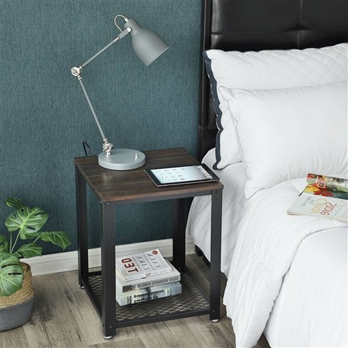 Some furniture looks good, but isn't very practical. Others are functional, but look cold and boring. Not so much for this Modern Industrial Metal Wood Nightstand Side Table with Mesh Shelf with warm wood tones and a stable grid shelf, you get the best of both worlds. The sturdy, matte-black iron frame and robust tabletop with a rustic look are precisely the elegant mix of styles that make this multi-functional bedside table stand out; it has unique character, remarkable durability and a great load capacity on the tabletop (up to 44 lbs) and shelf (up to 33 lbs).