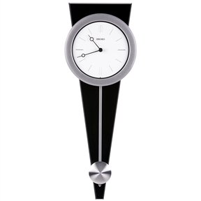 This Contemporary Wall Clock with Functional Pendulum Design would be a great addition to your home. A stylish clock that is sure to go with any contemporary styled room. The black finished wood contrasts beautifully with the silver bezel and pendulum. The crisp white dial features black bar hour markers and black hour and minute hands for an engaging minimalist impression. Includes one "AA" battery!