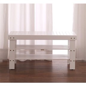 • Solid Wood Shoe Rack Entryway Storage Bench in White