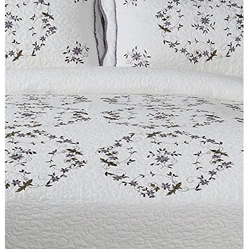 This Queen size Cotton Bedspread with Scalloped Edges and Floral Print Embroidery in White is a generously sized bedspreads with 100-percent soft cotton with floral print and embroidery, quilted 200 grams cotton batting with all over vermicelli quilting. Shams are sold separately.