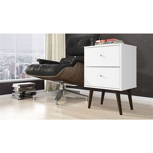 This White Modern Mid-Century Style 2-Drawer Side Table Nightstand introduces a beautifully designed nightstand. Designed with ideal dimensions of 17.72" x 27.09" x 14.7 and a Total Weight of 25.97 lbs., it is easy to place and store anywhere in your bedroom. Crafted from durable MDF, this nightstand has been designed 22 lbs. in the drawer. Designed to be a product of quality, it is with no doubt that this nightstand will be durable and long lasting for several years to come. The splayed legs provide a mid century modern appeal, enhancing the decor of your home. This nightstand is ideal for the bedroom to be an end table but can also go in any room. The color scheme makes it a beauty to look at and the quality is something you will certainly enjoy.