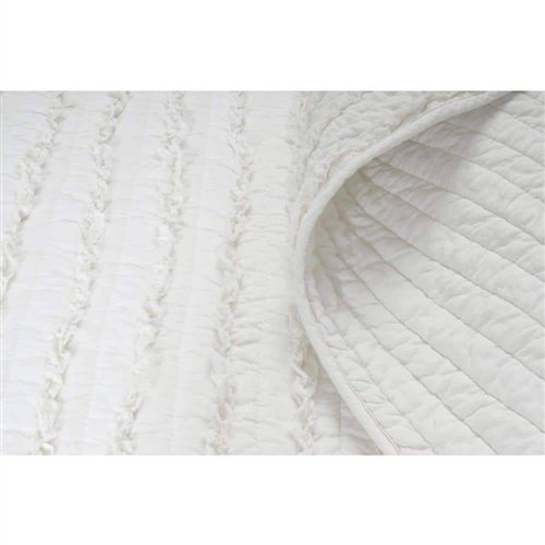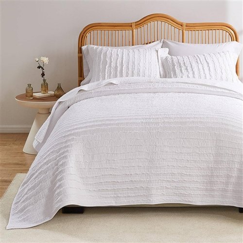 King size 3-Piece Quilt Set with 2 Pillow Shams 100% Cotton White Ruffles