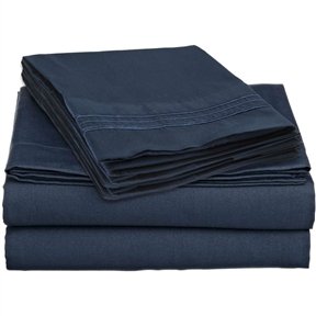 We know your bedroom is a place you relax and rejuvenate after all it's a place you spend one-third of life or even more. This King size 4-Piece Wrinkle-Free Microfiber Sheet Set in Navy Blue is designed with you in mind - soft, comfortable, and attractive, - beautiful designed embellished pillowcases with triple rows of stitching appliqué for a tailored, classic finish that pops with subtle style. - Deep pocket fitted sheets that will fit up to 18" Mattress. - An elastic all around the fitted sheet to secure a perfect snug fit. - Breathable, and soft to deliver a delectable sleeping experience, an investment for many years. Microfiber is used to make some of the highest quality linens in the world, including sumptuously soft bath and bed linens, they are strong, durable, and they may even be softer than expensive cotton's. - Health care facilities frequently use microfiber sheets as the softness reduces bedsores they are good for allergy sufferers as the microfibers deter pilling, dust and pollen, - Because microfibers are so fine, they are lightweight, dry faster than other materials and you can wash more per laundry load, won't pill, resist wrinkles and hold up well to washing, drying and regular use. - Other than cotton that can be subject to pilling creating a rough and uncomfortable texture. - Choose microfiber quality to provide a better quality sleeping experience.