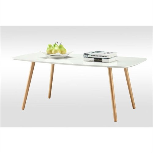 Bring your living room to life with this White Top Mid-Century Coffee Table with Solid Wood Legs. Featuring brilliant white piano finish table tops that are easy to care for and make clean up a breeze. The table also feature contrasting solid wood legs to make these pieces easy on the eyes.