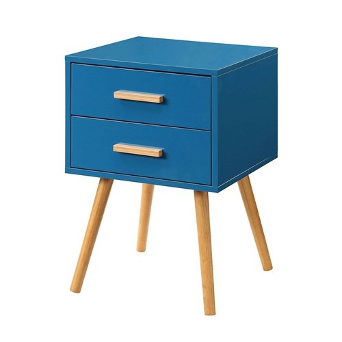 This Modern Classic Mid-Century Style End Table Nightstand in Blue Finish is perfect addition to any home. Featuring 2 Spacious drawers for storage that will allow you to hide away small odds and ends. With a piano finish surface, solid wood legs and bamboo drawer handles solid, It will for sure complement any decor!.