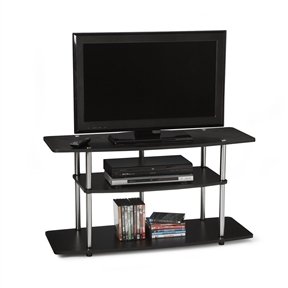 Modern Styling is the essense of 3-Tier Flat Screen TV Stand in Black Wood Grain / Stainless Steel. Easy and Simple No Tools Assembly. Convenience Concepts brings you exciting and affordable furniture. Combining exciting designs with economical overseas manufacturing to bring you the finest in sensible contemporary furniture. Focusing on R-T-A Entertainment, TV, Storage, and Accent furniture.