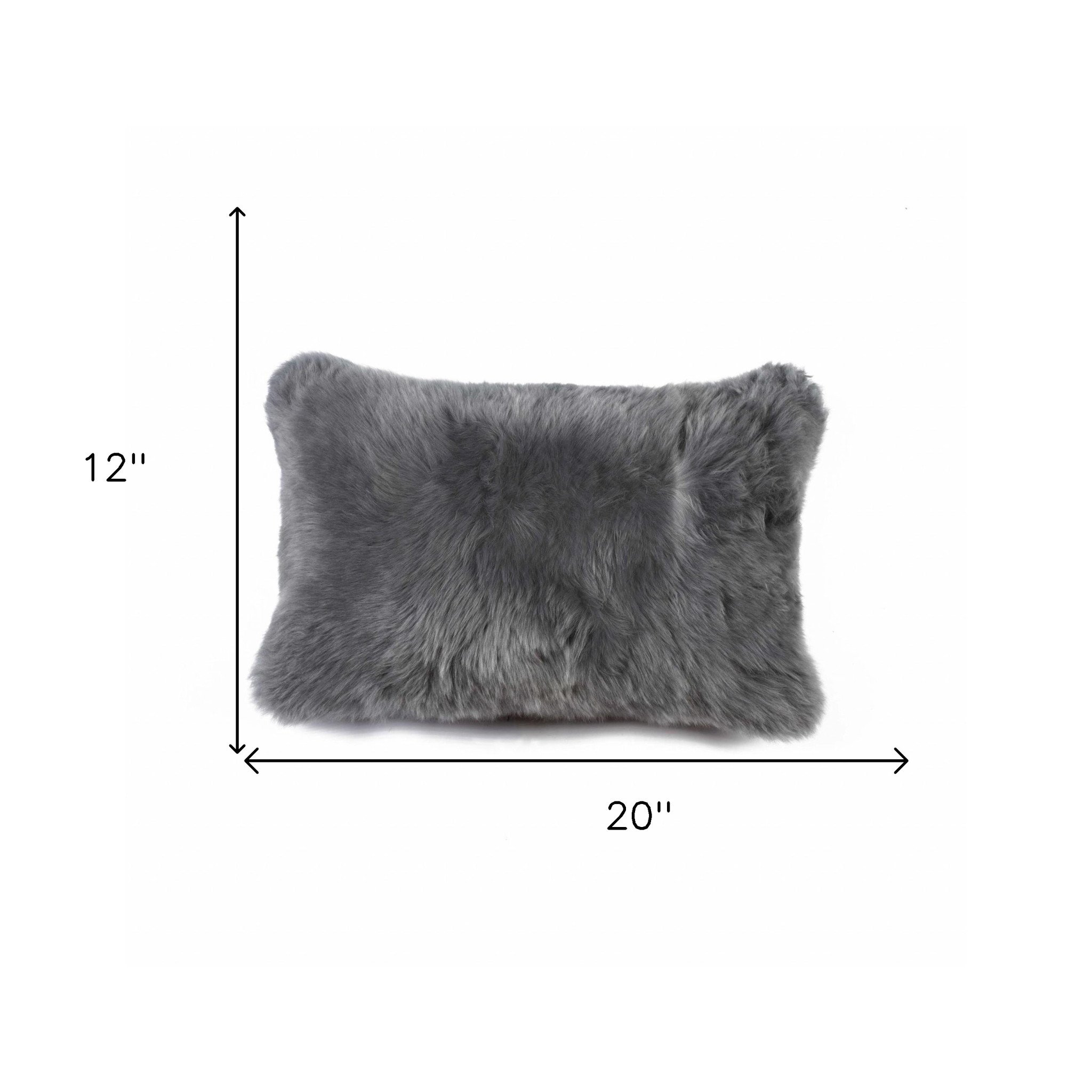 12" X 20" X 5" Gray Sheepskin Pillow
