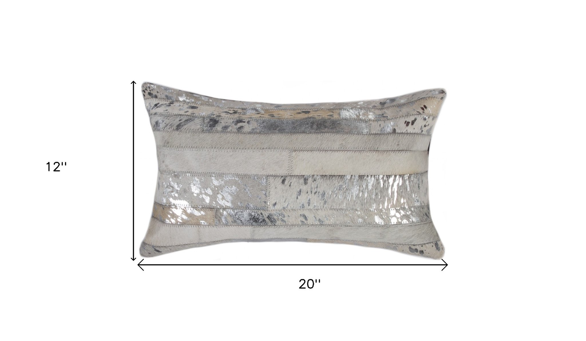 12" X 20" Gray and Silver Striped Cowhide Lumbar Throw Pillow