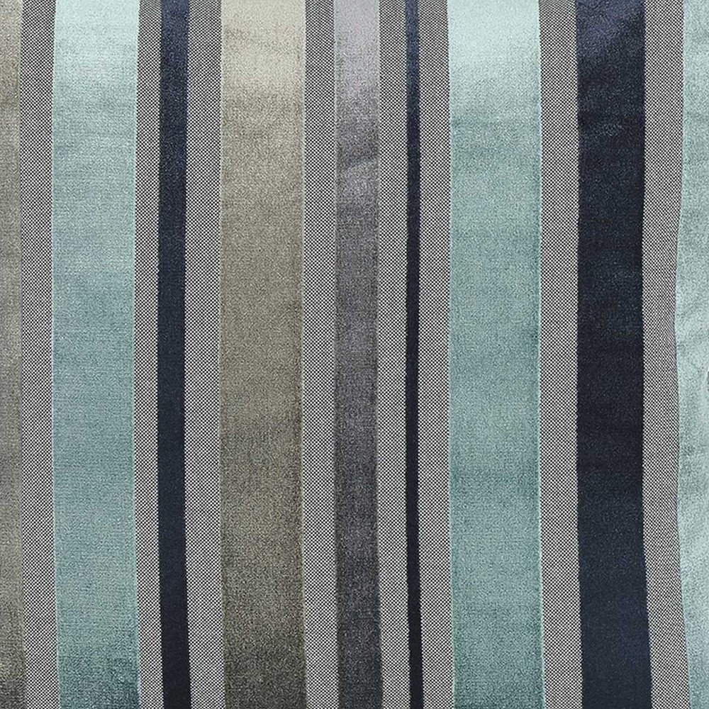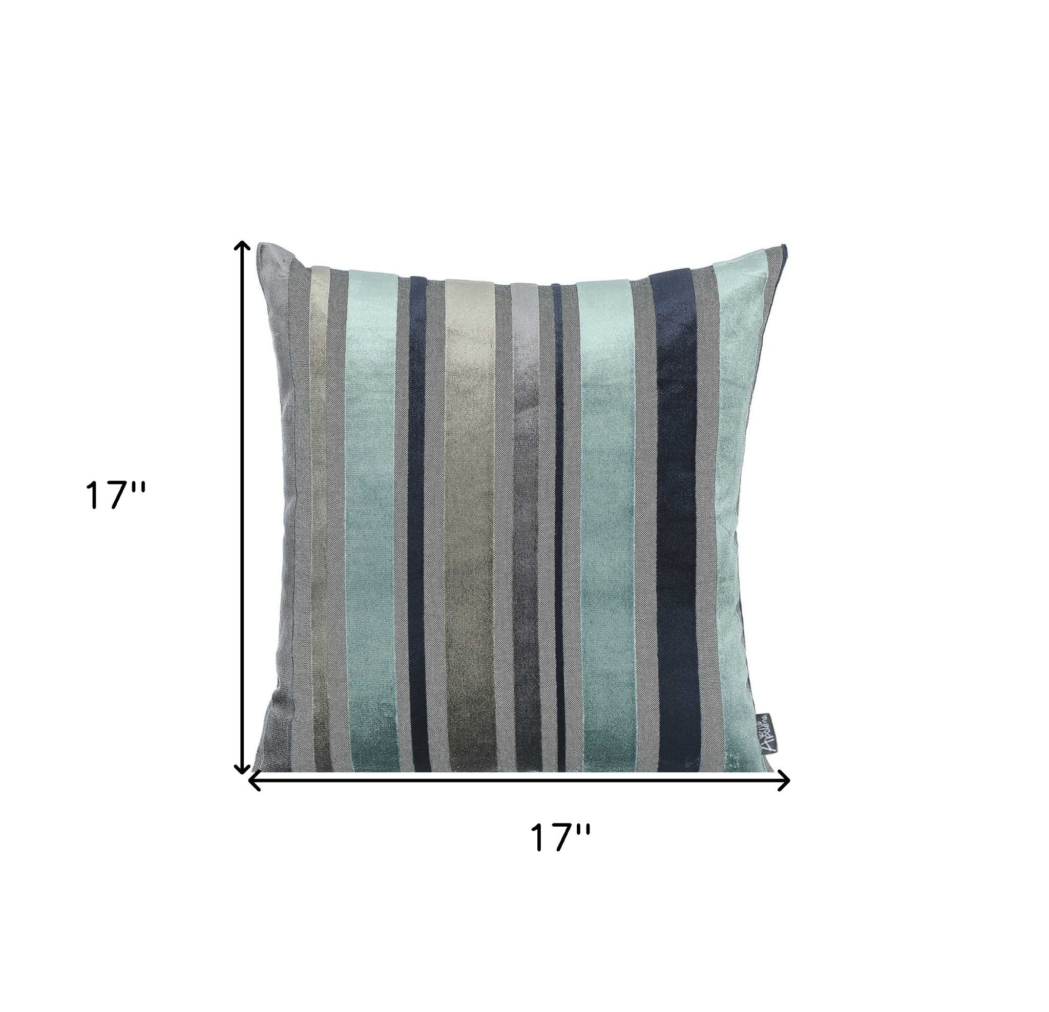 Easily update and refresh your home with this Variegated Stripe Decorative Throw Pillow Cover. This fun pattern of varying size striped in shades of blue, gray, aqua, and black and white will be a fun way to add some fashion and elegance to a room setting. A hidden zipper closure provides a clean and seamless look all the way around. Made of brushed polyester velvet, this pillow is luxuriously soft and comfortable. 17" X 17" each. Set of 2. Inserts are not included. Machine Wash Cold Separately, Gently Cycle Only, No Bleach, Do Not Tumble Dry, Do Not Iron.
