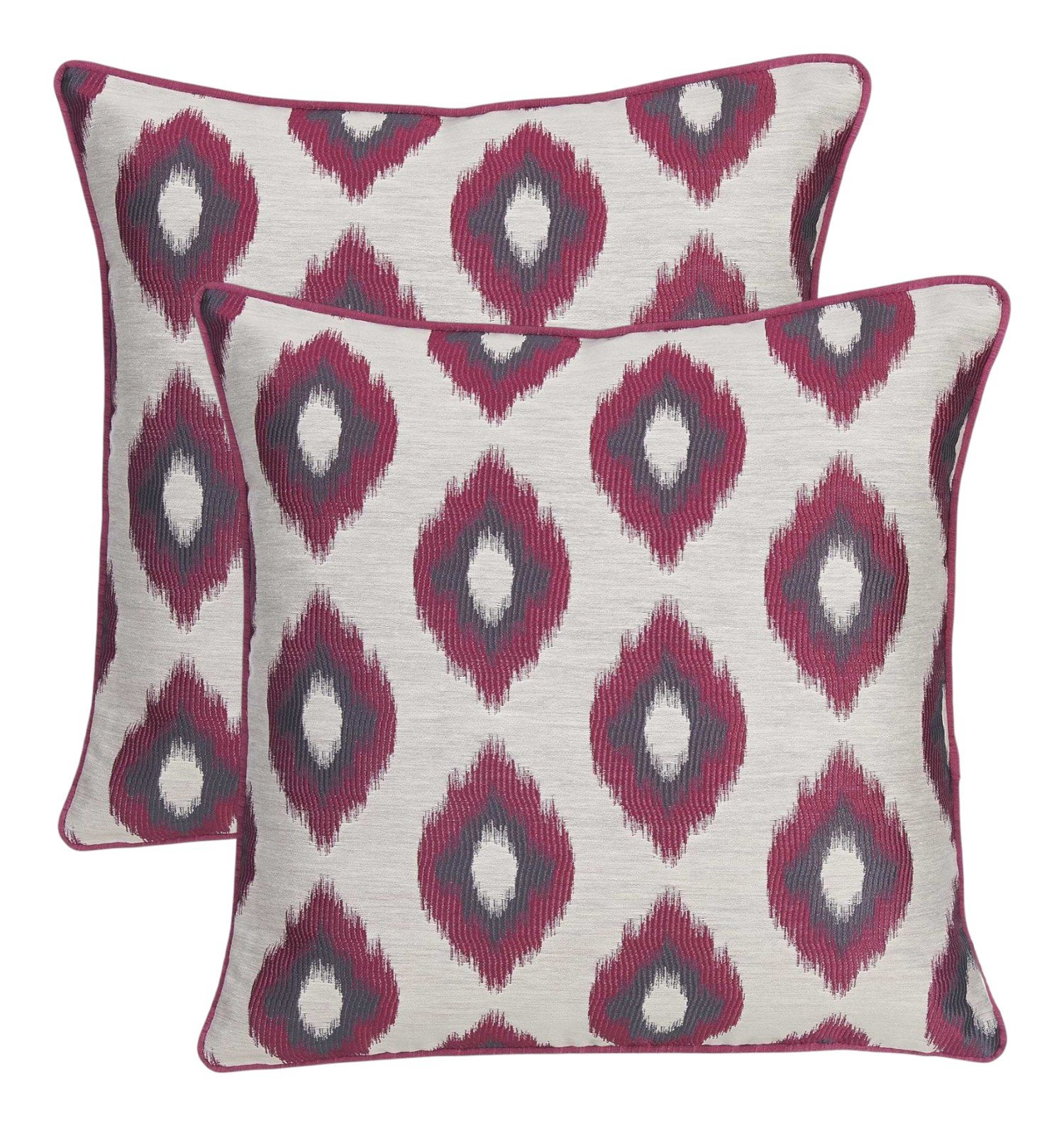 The perfect complement to your sofa, favorite chair, or bed, this set of two purple and ivory ikat poly cotton blend throw pillow cover is a great decorative accent. These great looking soft decorative pillow covers are expertly made of durable and long lasting polyester and cotton blend in a purple and ivory coloration. For anyone that loves to decorate or accent their space with color and texture. A great decorative accessory for your favorite chair, to accent your sofa, or to use as part of your bed ensemble. 17-inch H x 17-inch W x 1-inch D