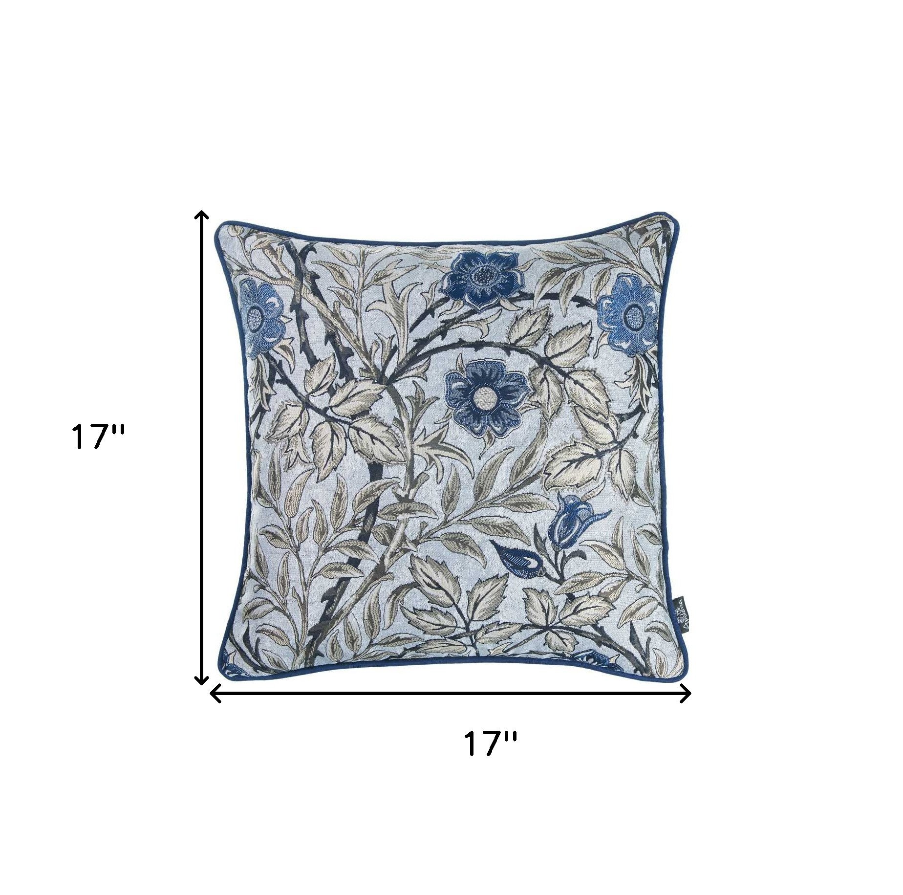 17" Beige And Blue Floral Fabric Throw Pillow Cover