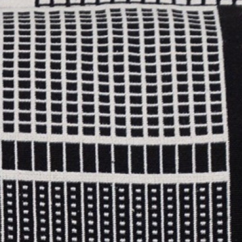 Add a cheerful element to your furniture with the Black and White Abstract Stripes Throw Pillow. The pillow is beautifully designed with white graphic abstract stripes against a solid black backdrop, suitable for any type or style of furniture. This is a 100% cotton pillow with a zipper closure on the back, and requires dry cleaning or spot cleaning. 20" x 20" x 5"
