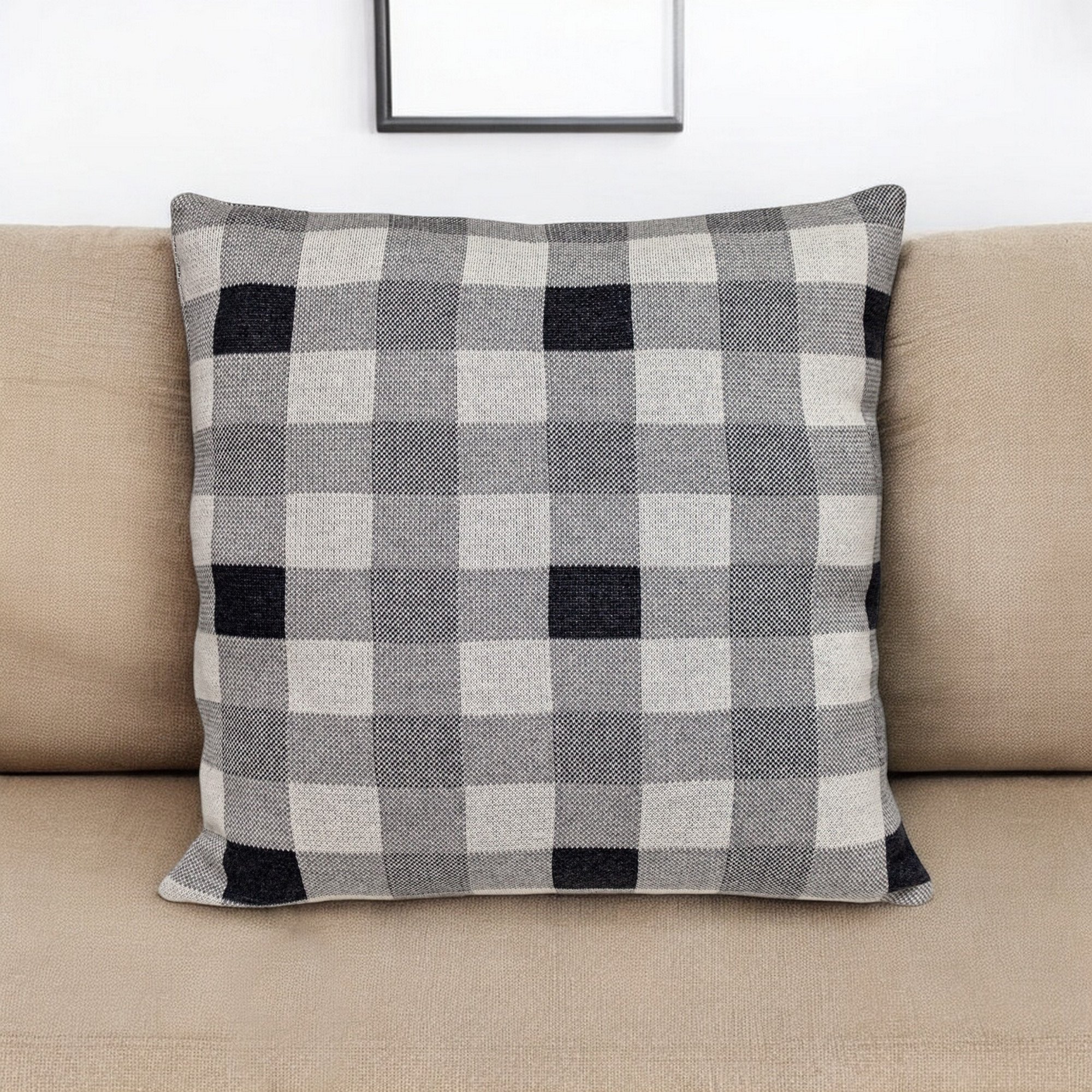 Make your lounging space cozy, comfortable, and subtly stylish with the Lead Grey Checkered Pillow. Made from 100% cotton, the knitted cushion cover with a checkered pattern in different shades of grey gives the pillow great warmth and elegant style. Along with adding style, the cushion is fluffy and soft to keep your comfortable, and there is a zipper closure on the edge for easy access and cleaning. 20" x 20" x 4"