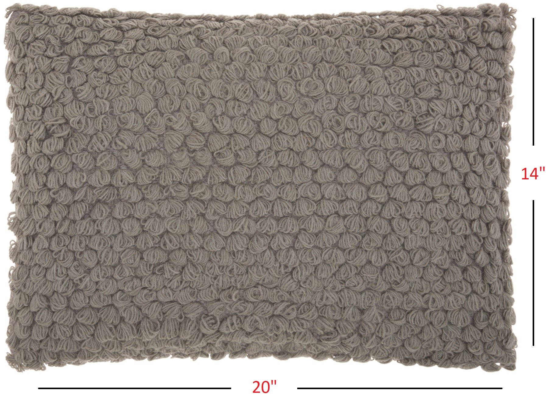 Invoke the sense of touch through textural design mixed with unmatched comfort with this Dark Gray Knotted Detail Lumbar Pillow. This pillow has a square narrow rectangular shape with rounded corners. The pillow is covered in a dark gray colored fabric that has knotted details on it. The knotted details are made of thin thread and add depth and dimension to the overall look of this throw pillow. This pillow will look great on your bed, on your couch, or even on your favorite chair and elevate the whole space. The unique yet minimal design of this throw pillow allows you to use it with any existing colors or decor styles you already have in your home. 6" H x 14" W x 20" D