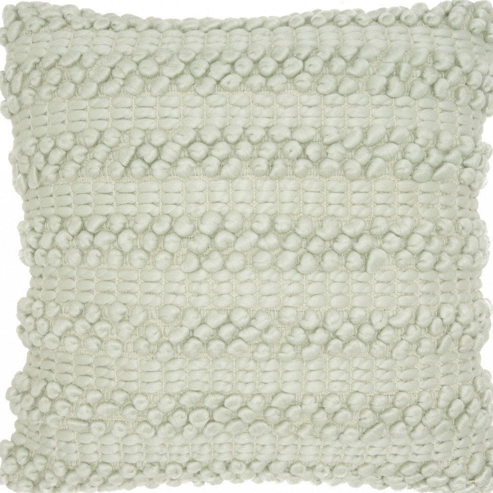 The perfect complement to your sofa, favorite chair, or bed, this 20-inch mint green striped throw pillow with texture is a great decorative accent. Super soft and built to hold its shape, this polyester pillow is a great option. Great to use on its own or mix with other decorations for the perfect look. Decorative pillows are a great way to change up the look and feel of your space easily and quickly. 20-inch H x 20-inch W x 6-inch D
