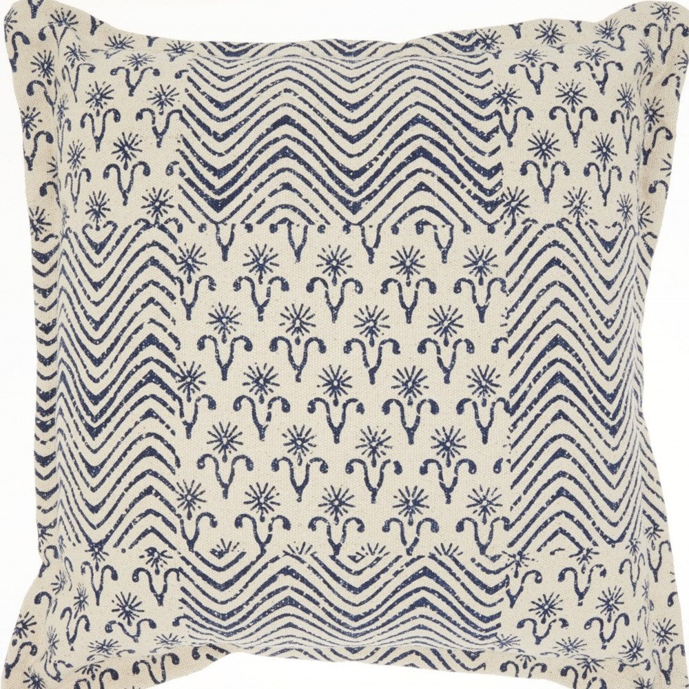 The subtlety of this Indigo Blue and Ivory Floral Waves Throw Pillow will make its way into your contemporary or casual setting without being overpowering. Inducing a peaceful vibe with its soft toned color palette, the pillow is beautifully accented with a blend of floral and wavelike patchworks over an ivory base. This 100% cotton-made pillow is meant to provide you with utmost comfort with its soft and plush surface texture while being incredibly easy to clean and maintain. The grace and strength will stay intact for years to come giving off a fresh and inviting feel at home. Whether paired with neutral hues or bold palette, this comforting throw pillow will uplift the aesthetics of your living space. 20" x 20" x 5"