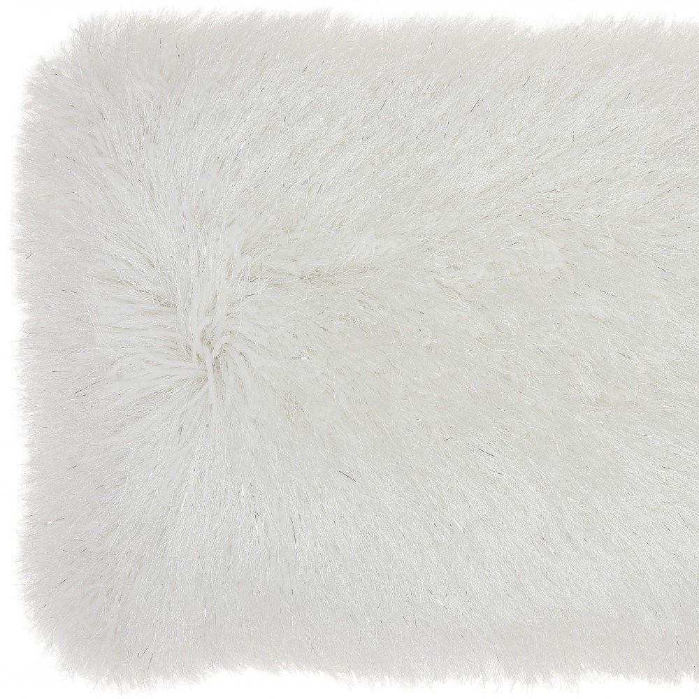 14" X 20" White Super Shaggy Throw Pillow