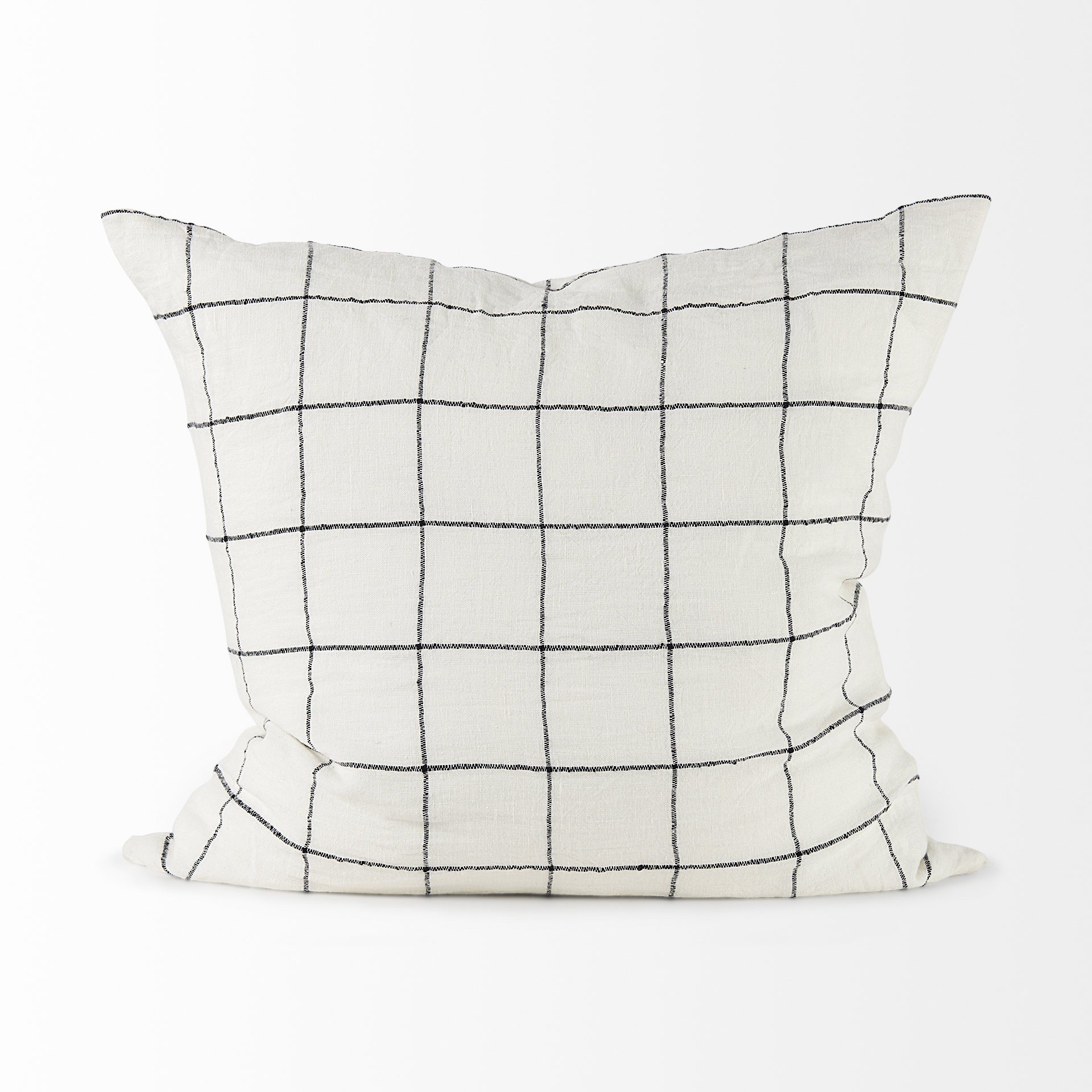 With this White and Black Grid Square Accent Pillow Cover you can add the perfect finishing touch to your couch. This cushion cover is made highly durable and soft material that provide comfort beyond measure. The design on the cushion features a square design set on a white background with black details. The back has a zip closure that ensures your cushion stays in there securely. The neutral color palette will look great on top of any couch, bed or chair you have and go with any interior style you have in your home. 22" H x 22" W x 1" D