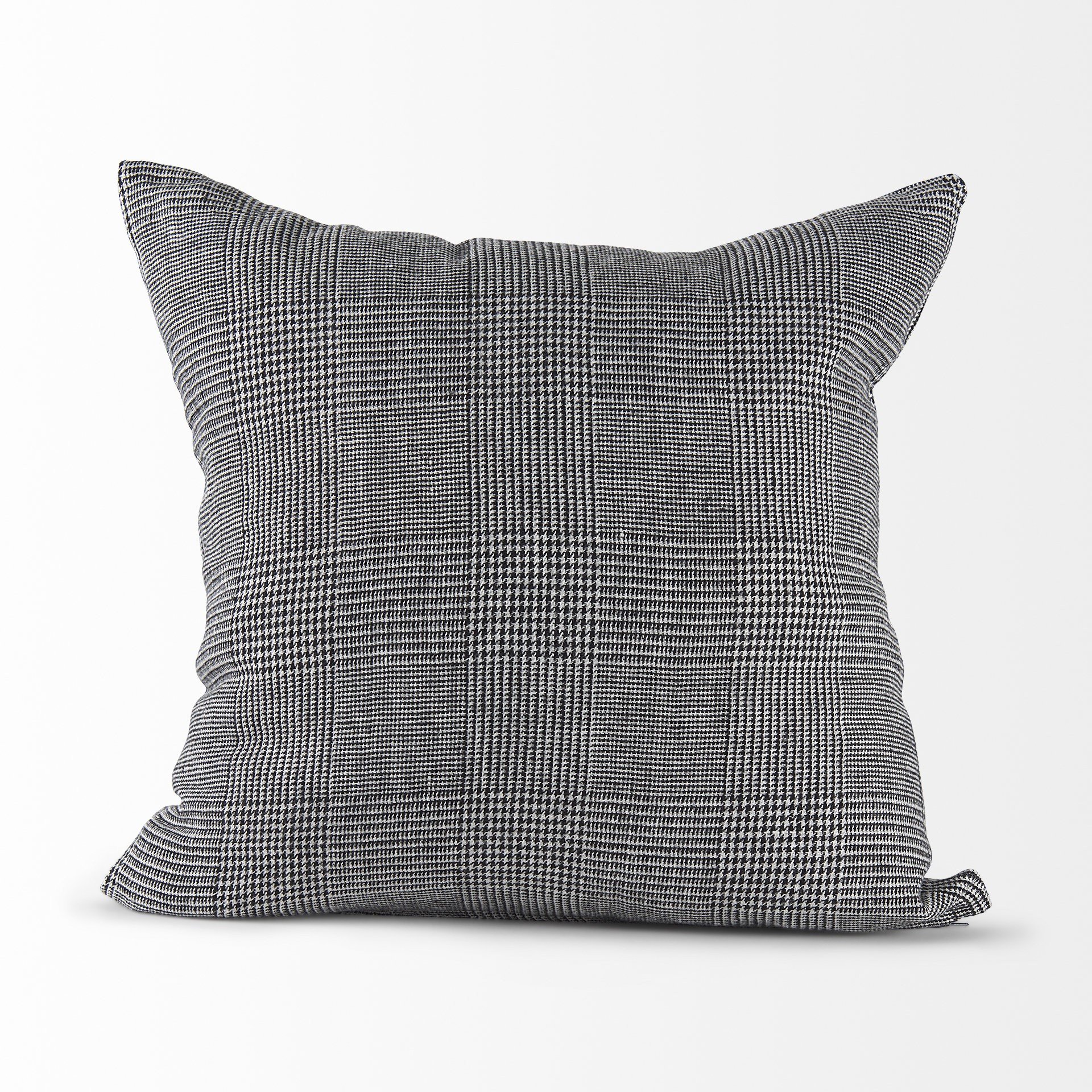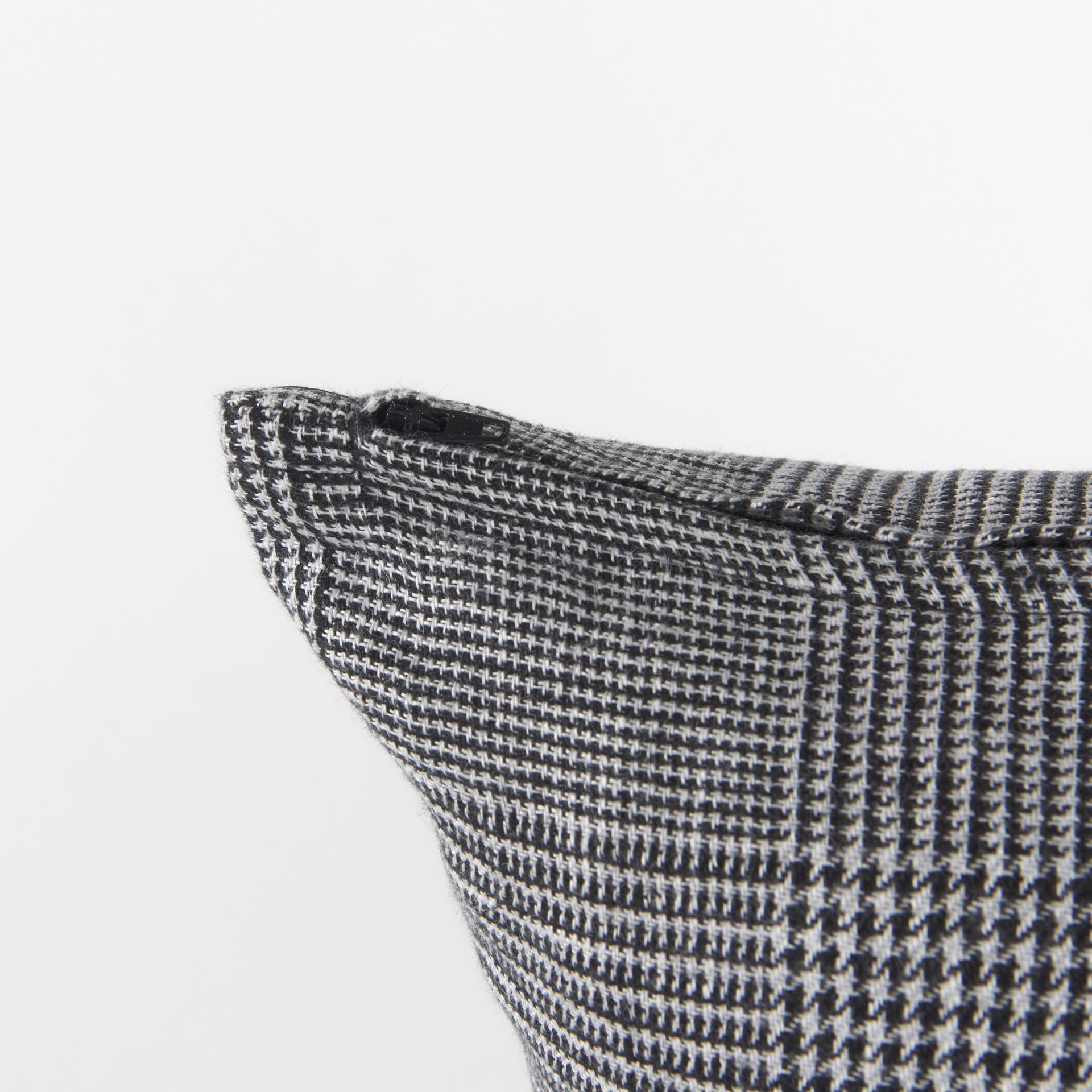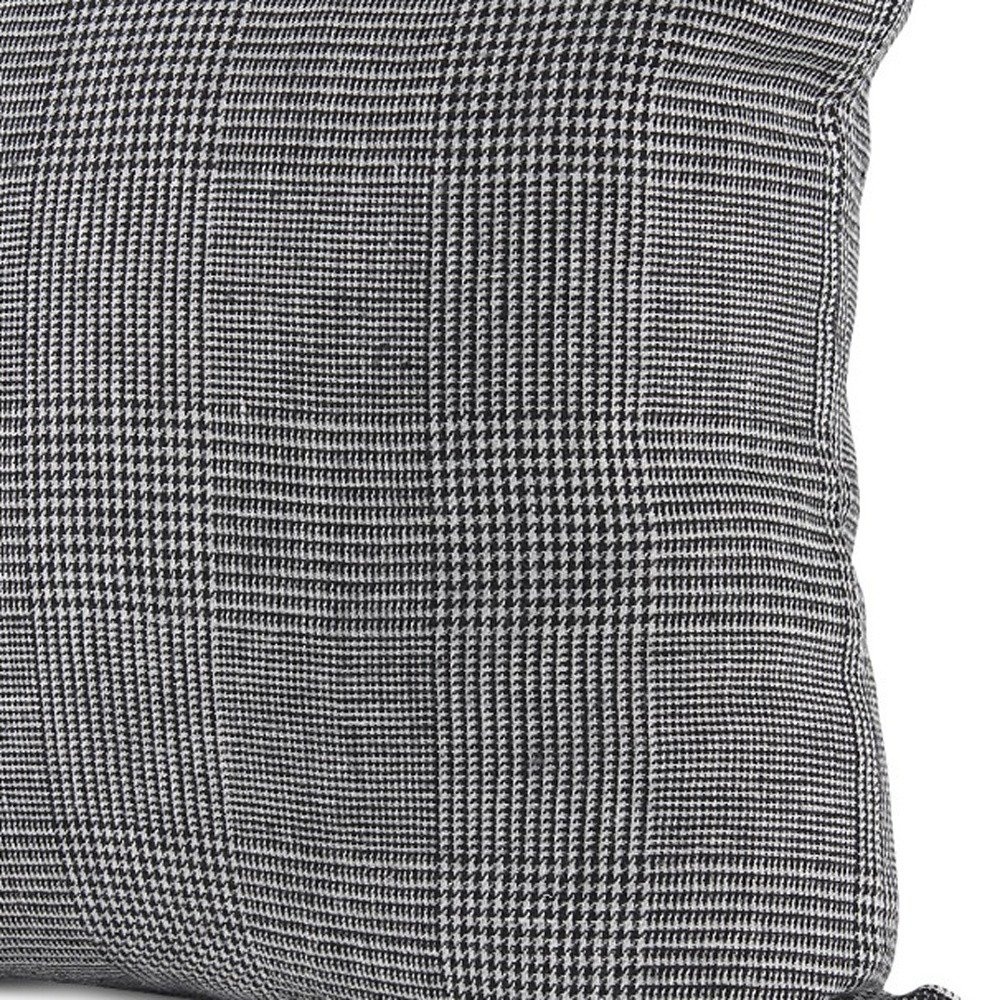 With this White and Black Patterned Throw Pillow Cover you can add the perfect finishing touch to your couch. This Throw Pillow Cover is made highly durable and soft linen material that provides comfort beyond measure. This Throw Pillow Cover has a narrow tartan print on it in a square pattern. This pattern is in a black and white colors which makes it look simple yet unique. The back has a zip closure that ensures your cushion stays in there securely. You can easily clean and wash this Throw Pillow Cover without any damage or fading of the colors. The neutral color palette will look great on top of any couch, bed or chair you have and go with any interior style you have in your home. 20" H x 20" W x 1" D