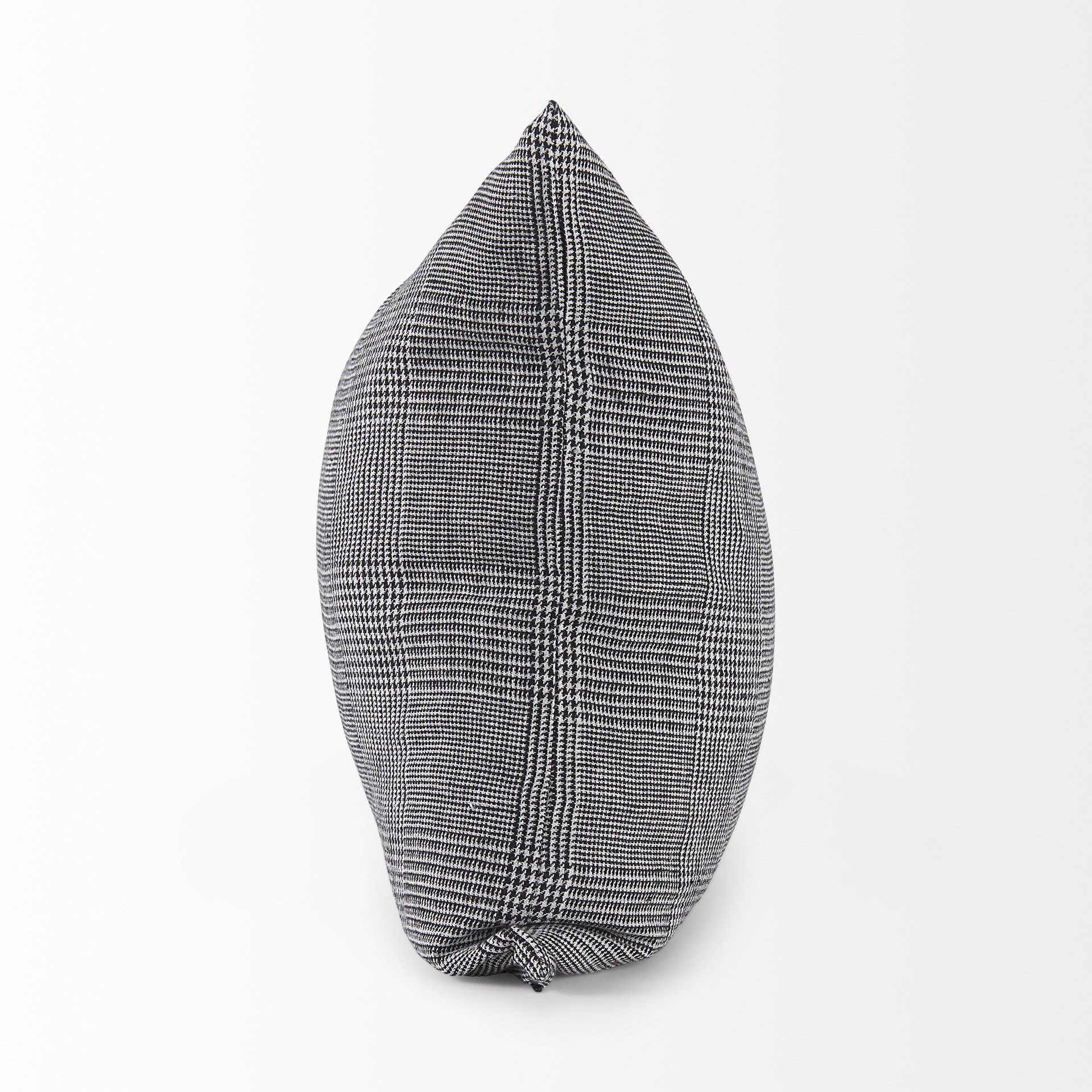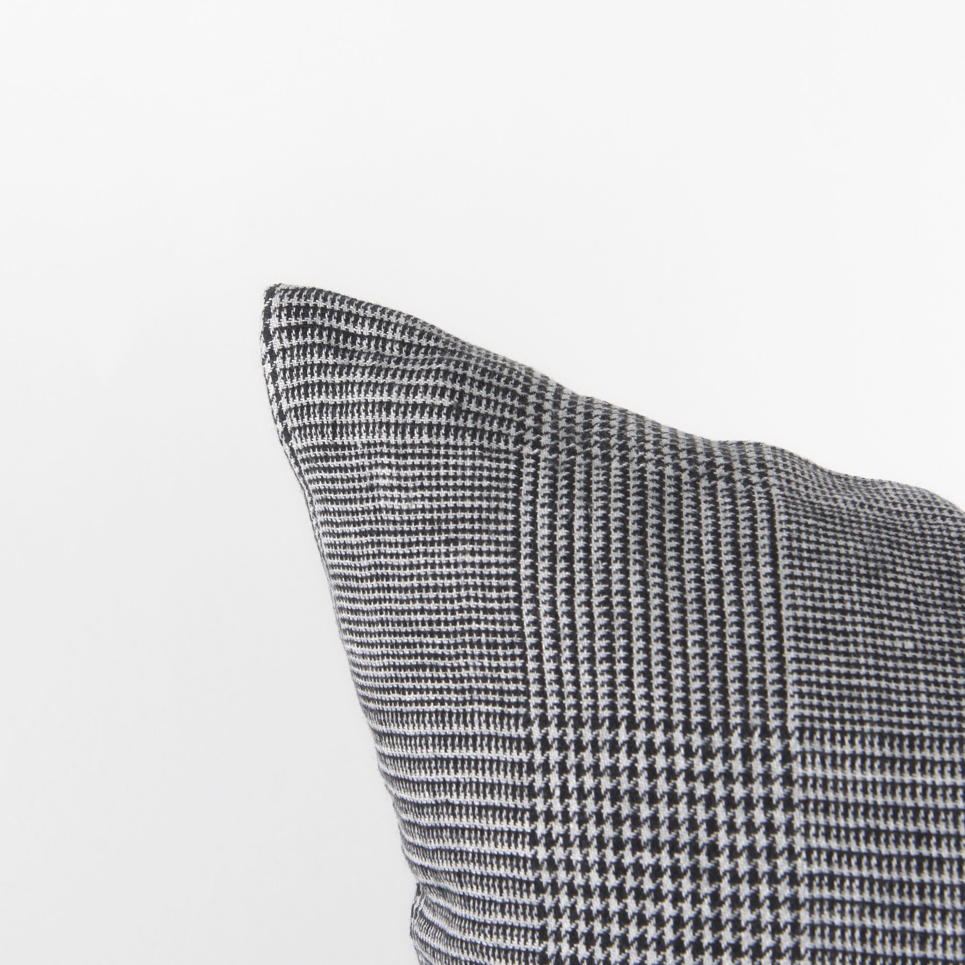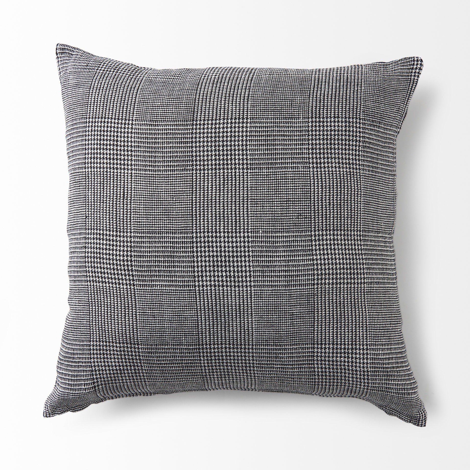 With this White and Black Patterned Throw Pillow Cover you can add the perfect finishing touch to your couch. This Throw Pillow Cover is made highly durable and soft linen material that provides comfort beyond measure. This Throw Pillow Cover has a narrow tartan print on it in a square pattern. This pattern is in a black and white colors which makes it look simple yet unique. The back has a zip closure that ensures your cushion stays in there securely. You can easily clean and wash this Throw Pillow Cover without any damage or fading of the colors. The neutral color palette will look great on top of any couch, bed or chair you have and go with any interior style you have in your home. 20" H x 20" W x 1" D