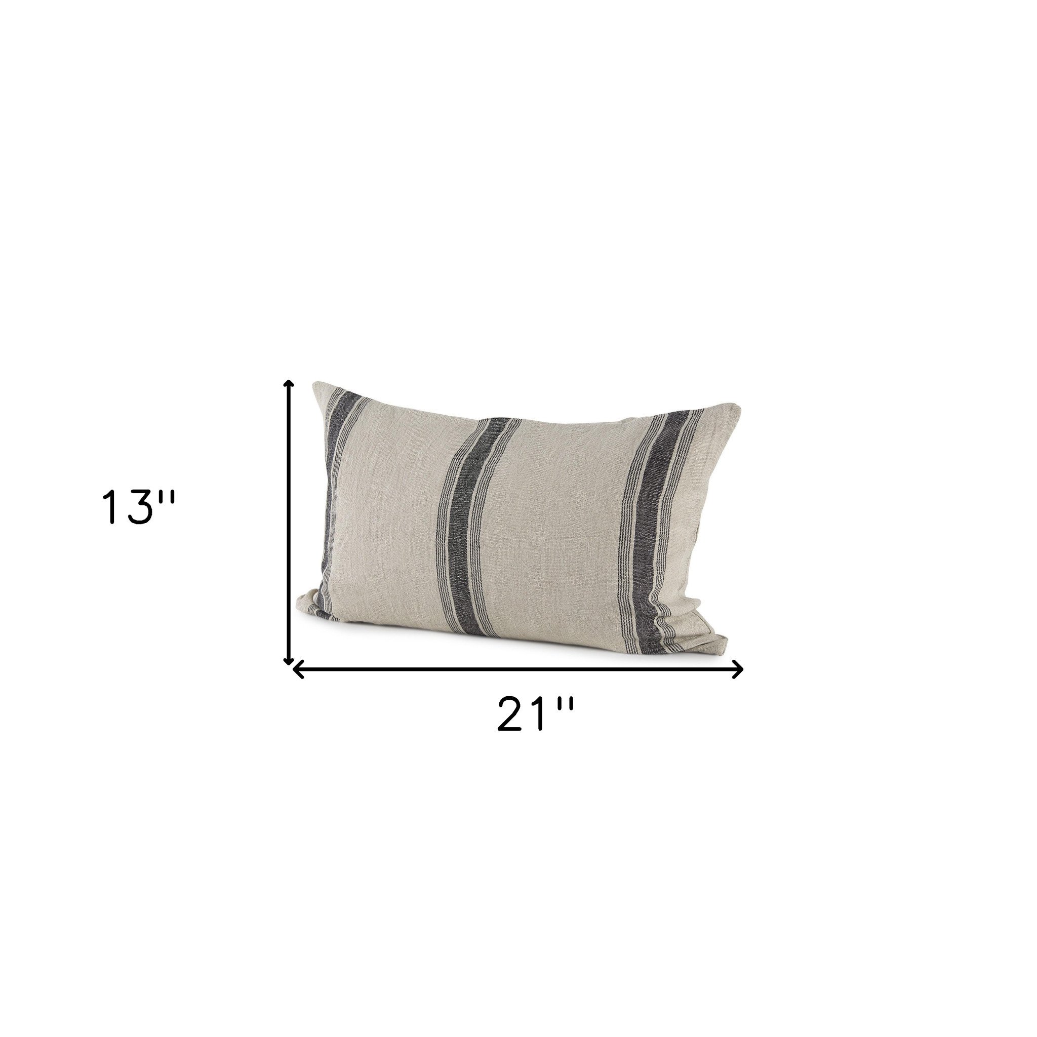 13" X 21" Beige and Black Striped Linen Throw Pillow Cover