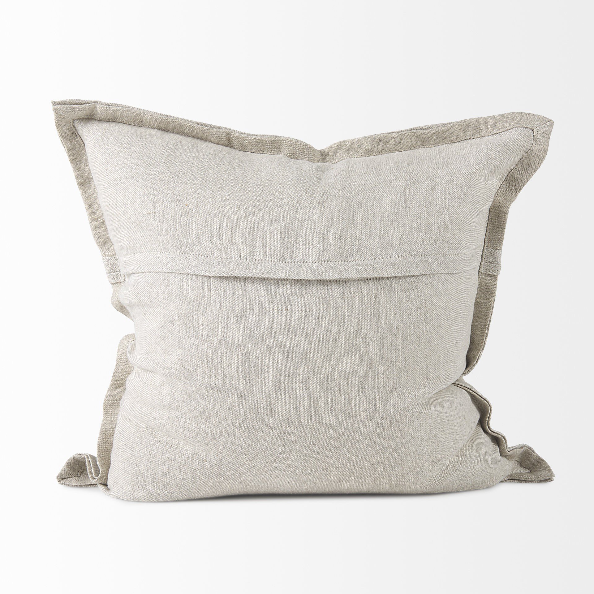 With this Cream Bordered Pillow Cover you can add the perfect finishing touch to your couch. This Pillow cover is made highly durable and soft linen material that provides comfort beyond measure. This Pillow has a slightly textured cream background which is encassed in a contemporary style cream border. The border fans out slightly and ads dimension to the Pillow cover. The back has a zip closure that ensures your Pillow stays in there securely. The neutral color palette will look great on top of any couch, bed or chair you have and go with any interior style you have in your home. 1" H x 20" W x 20" D
