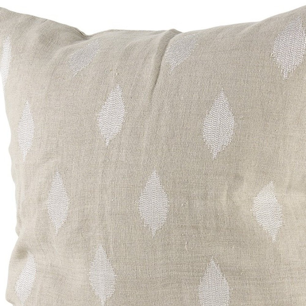 With this Beige and White Patterned Pillow Cover you can add the perfect finishing touch to your couch. This Pillow cover is made highly durable and soft linen material that provide comfort beyond measure. The Pillow cover has a beige background in a stonewash finish with a white leaf pattern scattered around it.The back has a zip closure that ensures your Pillow stays in there securely. The neutral color palette will look great on top of any couch, bed or chair you have and go with any interior style you have in your home. 1" H x 18" W x 18" D