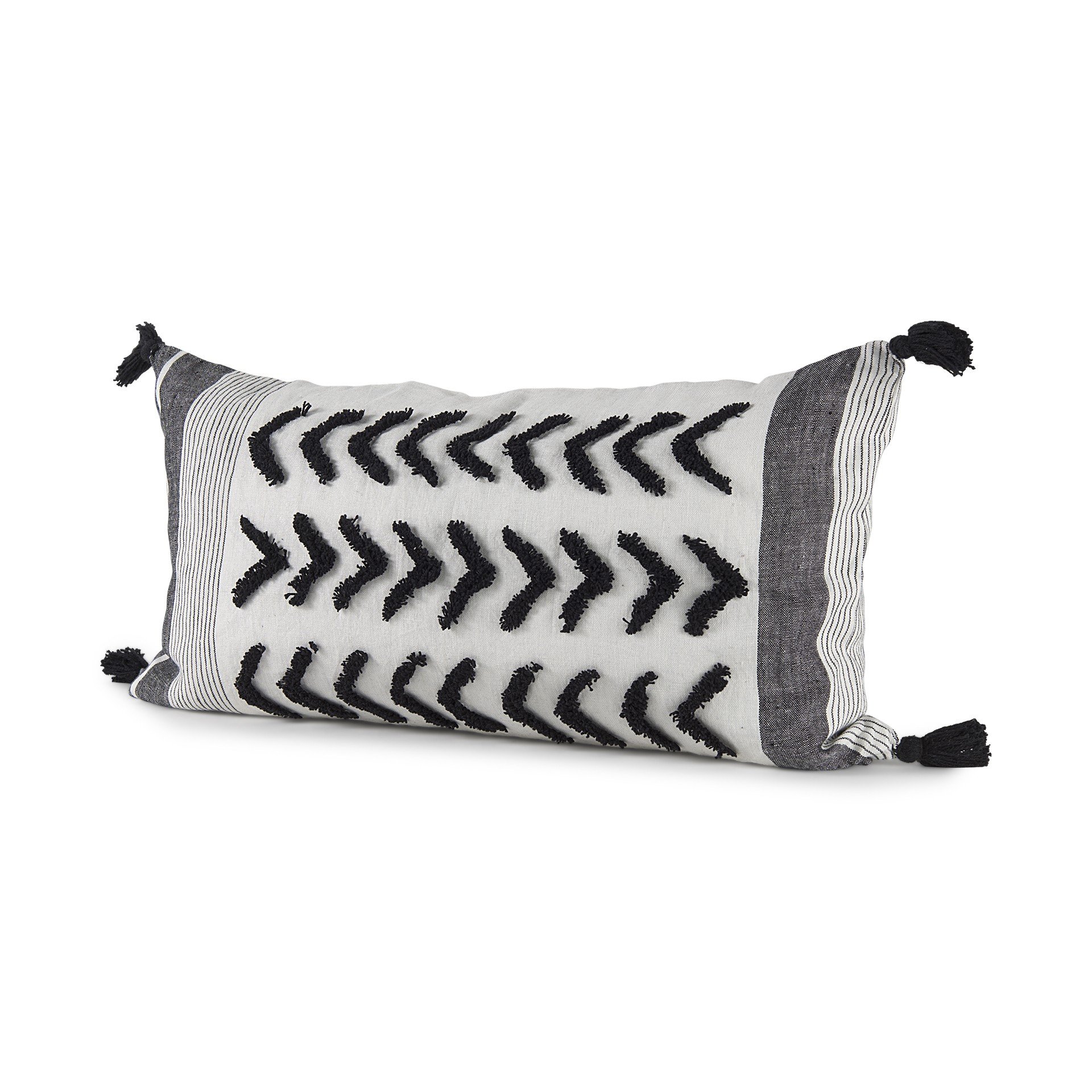 Home > White And Gray Fringed Lumbar Pillow Cover